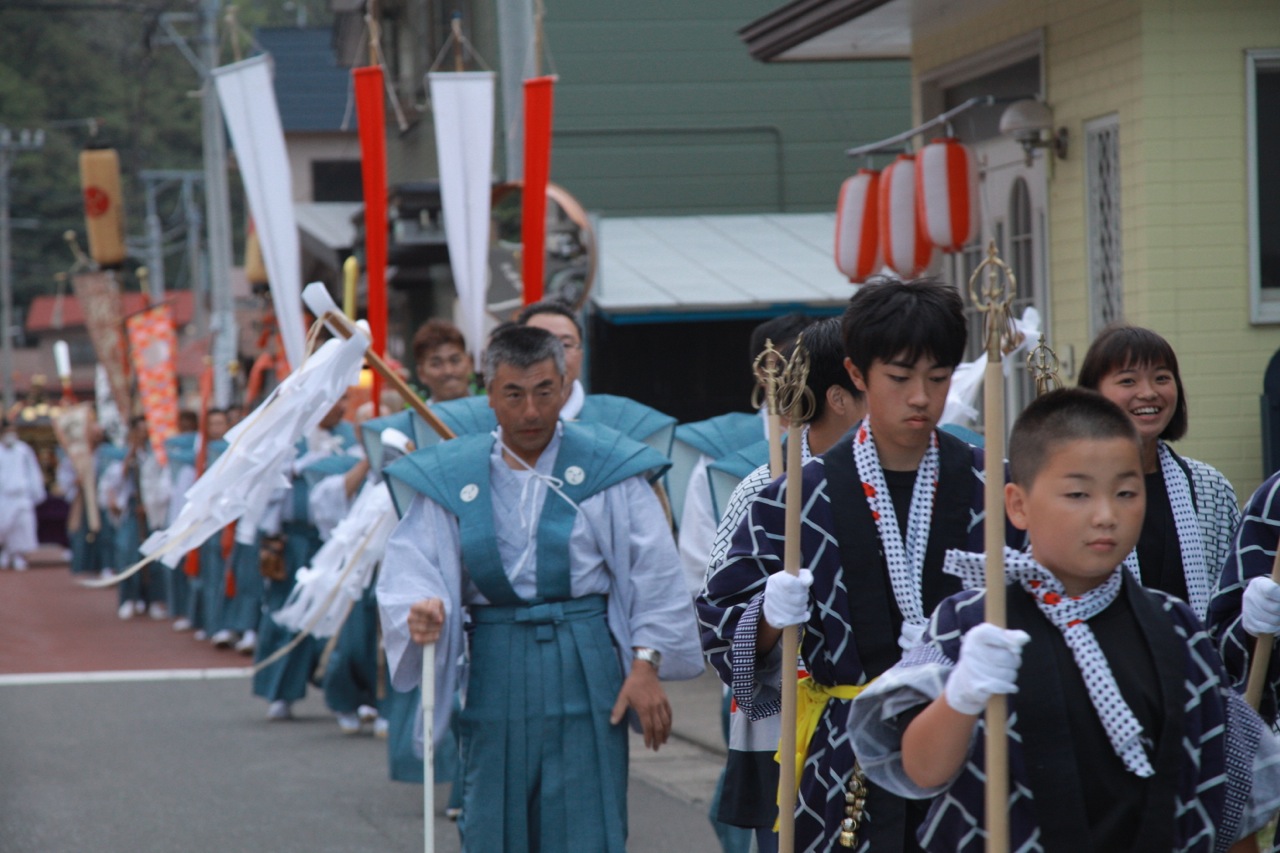 山車や子ども神輿、子供ねぷたが夜遅くまで練り歩きます。
