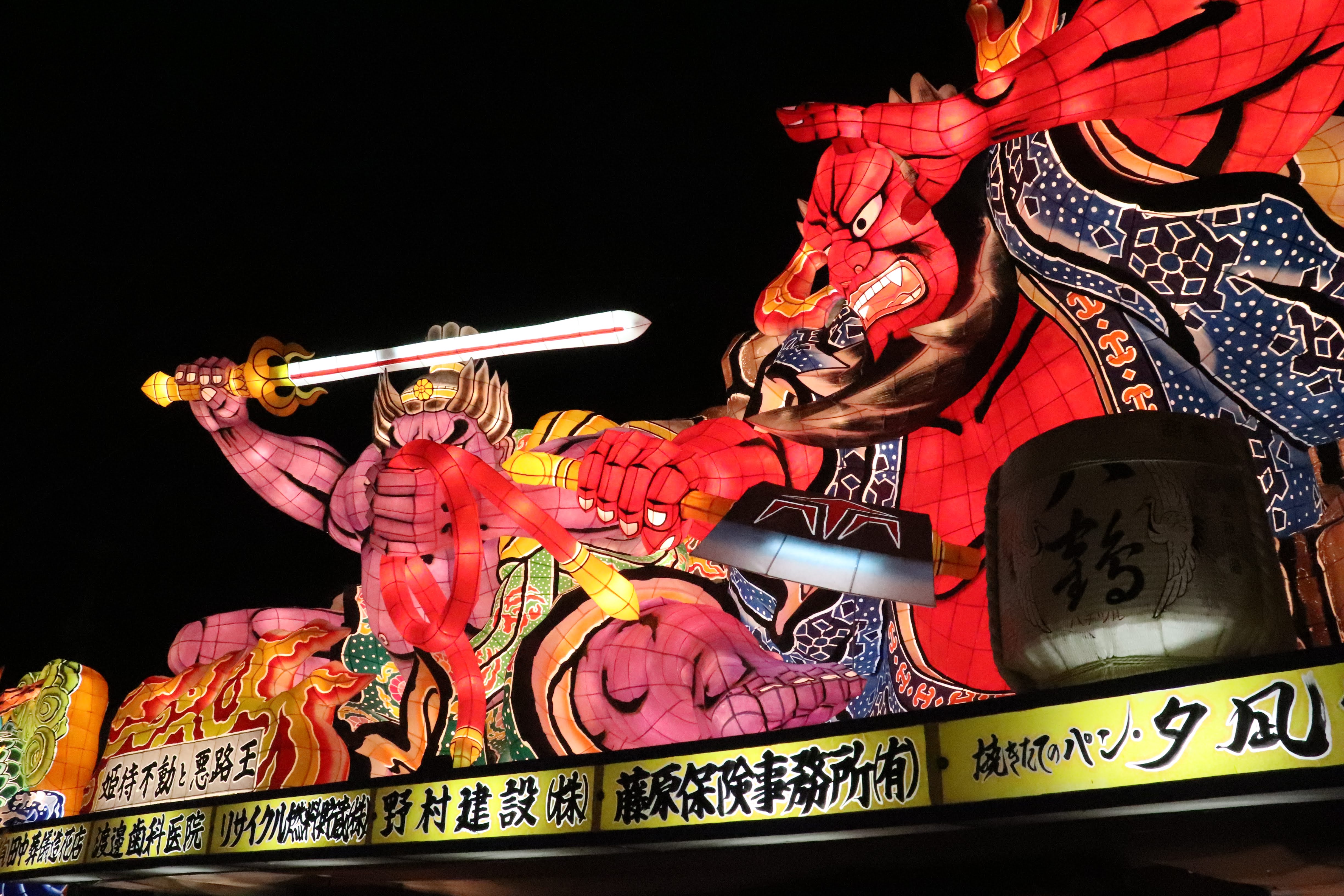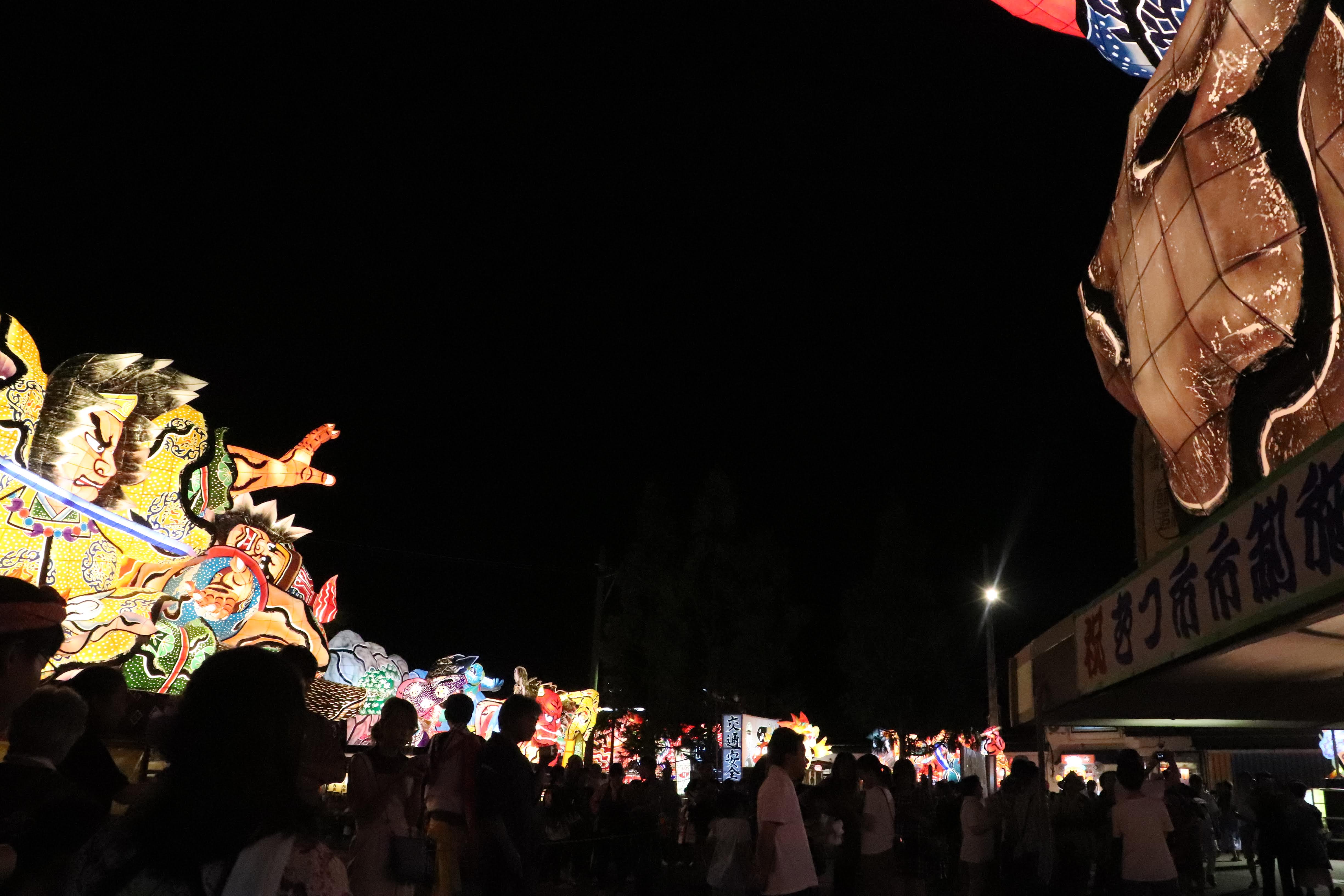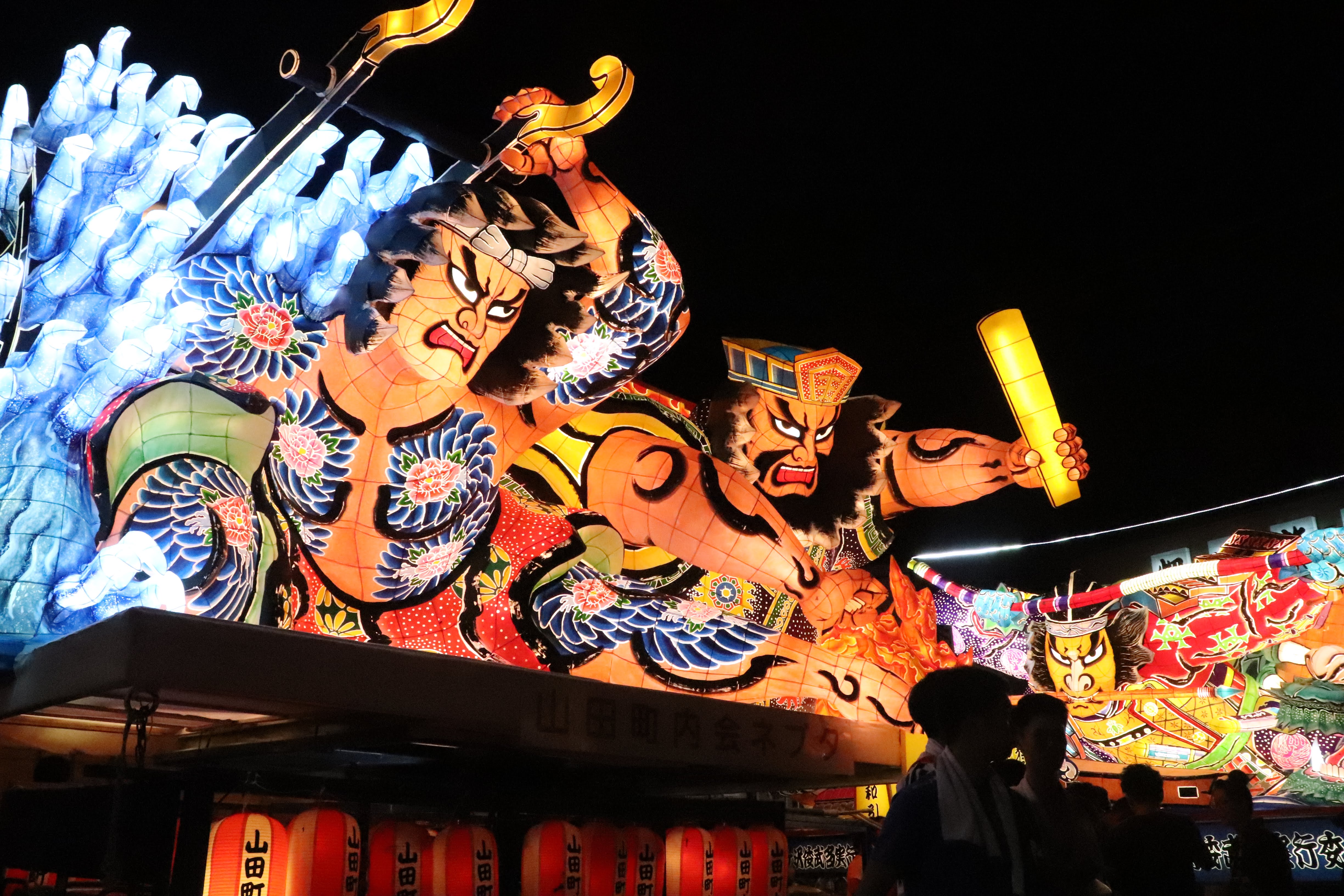 大湊地区で130年以上行われている伝統のネブタ祭り。町内会や職場からきらびやかな十数台のネブタが運行され、笛や太鼓の囃子が祭り情緒を盛り上げる。