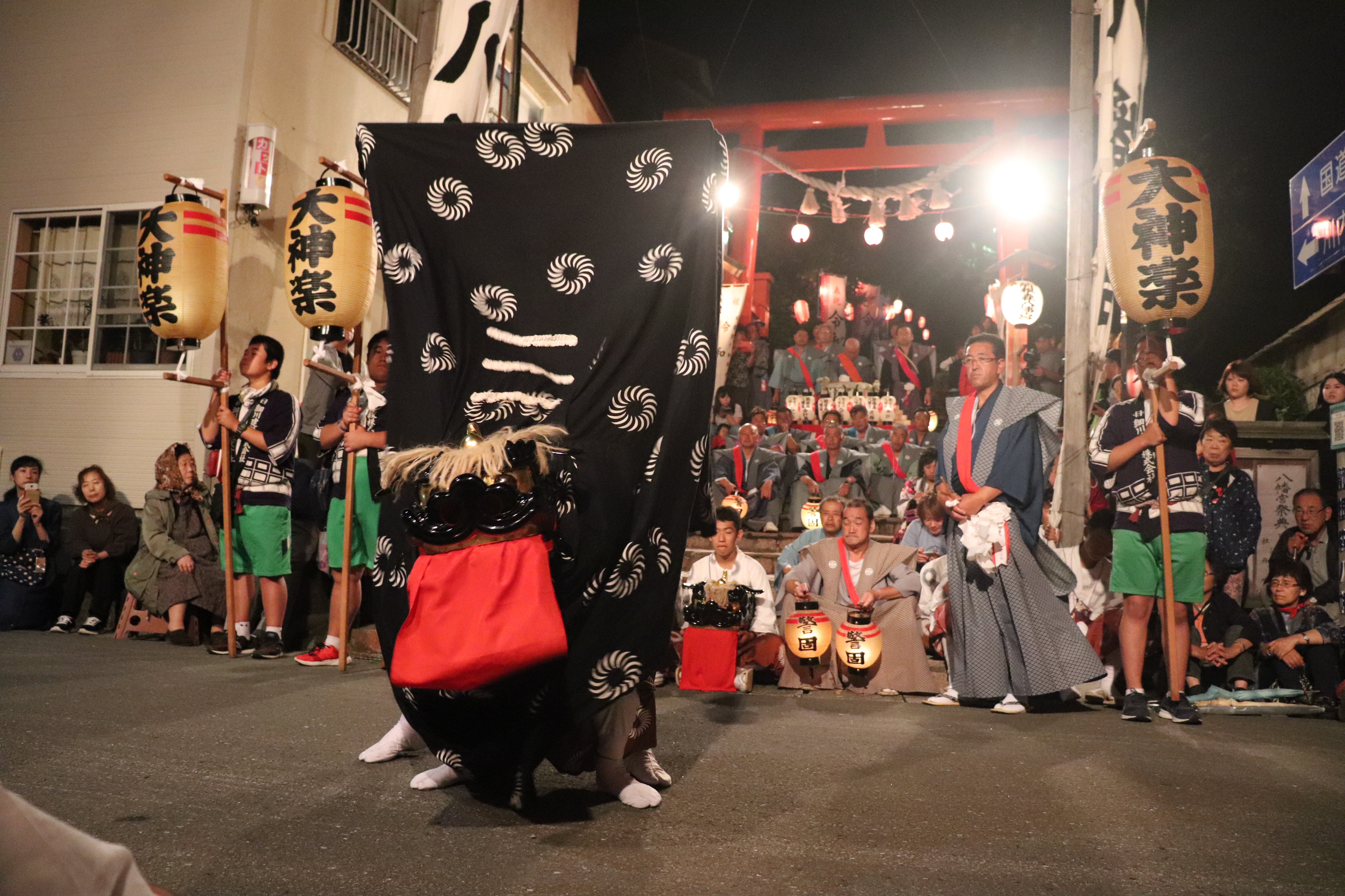 海上安全や魔除けの御利益があるとされ、古くから信仰されてきた神社の例大祭。 哀愁を帯びた祭り囃子とともに、由緒ある神楽や神輿、山車の長い行列が村内を巡行する。 江戸時代から300年余りの歴史あり。
