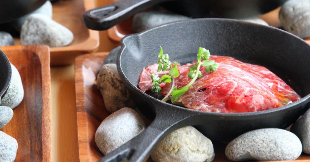 東通牛ランプ肉を昆布と津軽海峡の塩で漬け込み薄切りにし、一晩乾燥させて生ハム仕立てにしました。生ハム仕立ての和牛の下には、根曲がり竹のサラダを敷き詰めカリカリに焼いた焼ウニをトッピングしました。