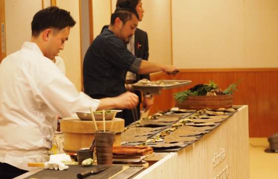 今回の下北ジオダイニングでは、鮨割烹「東寿し」柿本料理長が率いる地元シェフチームを結成。下北の食材を使用したコース料理を提供しました。