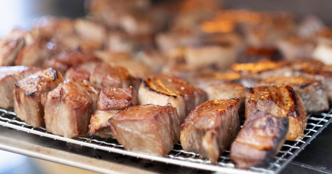 名前の由来は、酒かすを加えた餌を与えることにある「ほろよい豚」。ほろ酔いになり気持ちよく安眠し、ストレスなく育つので甘く柔らかい上質なお肉・脂に育ちます。そんな地元の特産品「ほろよい豚」を使用した一品です。