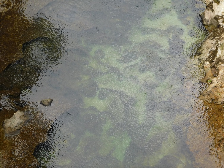 あじさい橋とセキレイ橋の間には下戸ヶ淵という小さな橋が架かった場所があり、この橋から川底をのぞき込むと、おう穴(ポットホール)と呼ばれる穴をたくさん見ることができる。これは溝にはまった小石が、長い間川の流れで回転することで、岩石面を削ってできた穴である。津軽海峡に面したちぢり浜や仏ヶ浦などでもみることができる地形だが、ここは特にその数が多く、おう穴群と呼ばれている。