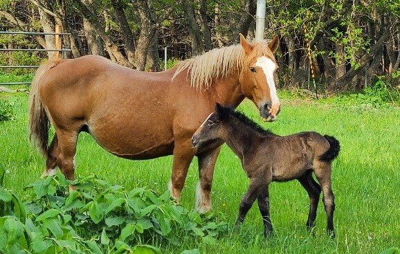 東通村尻屋崎の寒立馬。海に面した下北半島東北端の極寒の冬を、吹雪の中でじっと耐える姿は、私たちに勇気を与えてくれます。春になると仔馬が生まれます。親子の様子や、仲間同士でコミュニケーションをとりながら放牧地でゆったりと過ごす様子など、心温まる光景がここにあります。