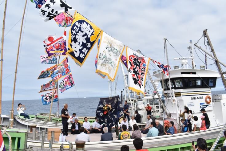 真冬の「おこもり」は牛滝地区ならではの行事だが、毎年7月20日に佐井村内7つの港で行われるのが「海の記念日」行事だ。色とりどりの大漁旗を飾り付けた漁船群が出港し、海上で神楽を奉納する。類似の行事は大間町や風間浦村などでも見られる。海と共に生きてきた下北半島だからこそ、大切な人の無事を祈ったり、大漁を願ったりしながら、小さな集落単位でさまざまな伝統行事や伝統芸能を大切に守ってきたのではないかと、ふと思わされる。