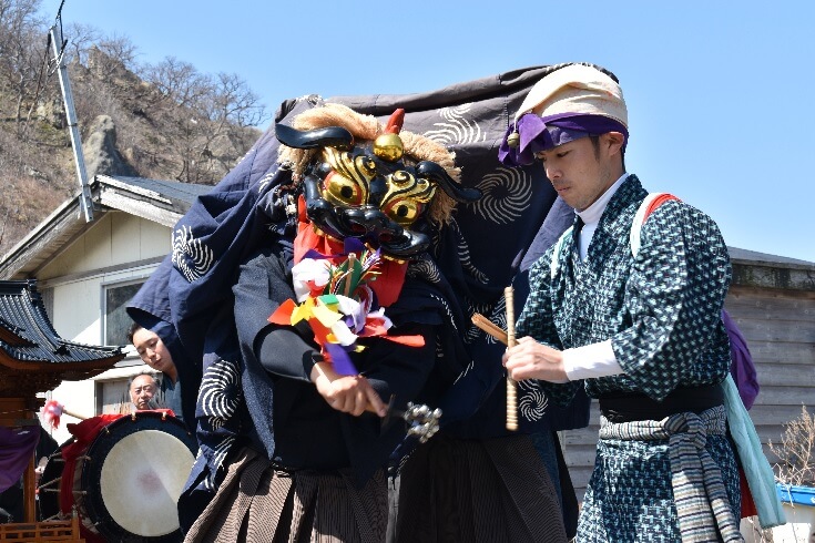 「まさかりの刃」にあたる下北半島西部に位置する佐井村。その最南端にあるのが人口100人ほどの集落・牛滝地区だ。海風がゴーゴーと吹き荒れ、辺りに雪が積もる真冬の夜、牛滝地区の小さな神社に男性たちが続々と集まってくる。