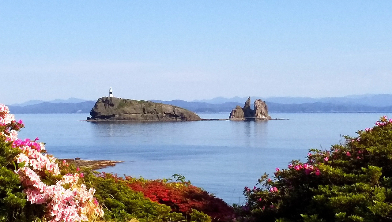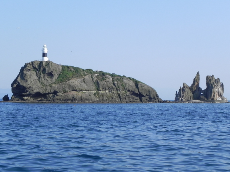 そして陸奥湾に浮かぶ鯛島。どうやってもクジラが潮を吹いているようにしか見えないけれど、灯台の名称は陸奥弁天島灯台で、ここでも弁天様が大活躍。7月下旬から10月末まで観光遊覧船「夢の平成号」が脇野沢港から出ており、島に上陸することができる。