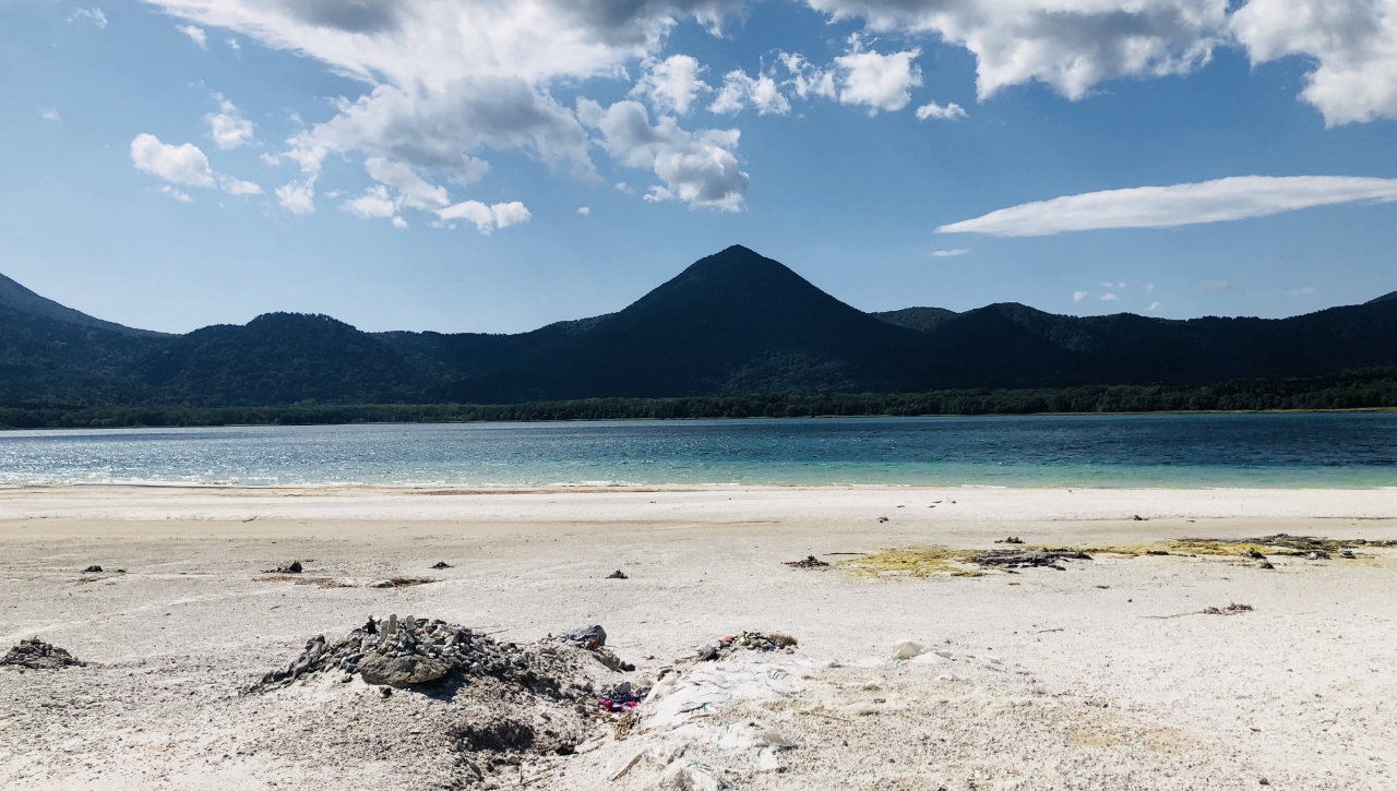 恐山は活火山なので、剥き出しの岩肌から火山ガスが噴出し、硫黄臭が立ちこめています。これが、独特の雰囲気を醸し出し「地獄」に例えられています。一方で、岩場地帯を抜けると山々の中心に白浜が美しい宇曽利湖が現れます。その美しさと静けさが「地獄」と対比して「天国(極楽浄土)」とされる理由です。