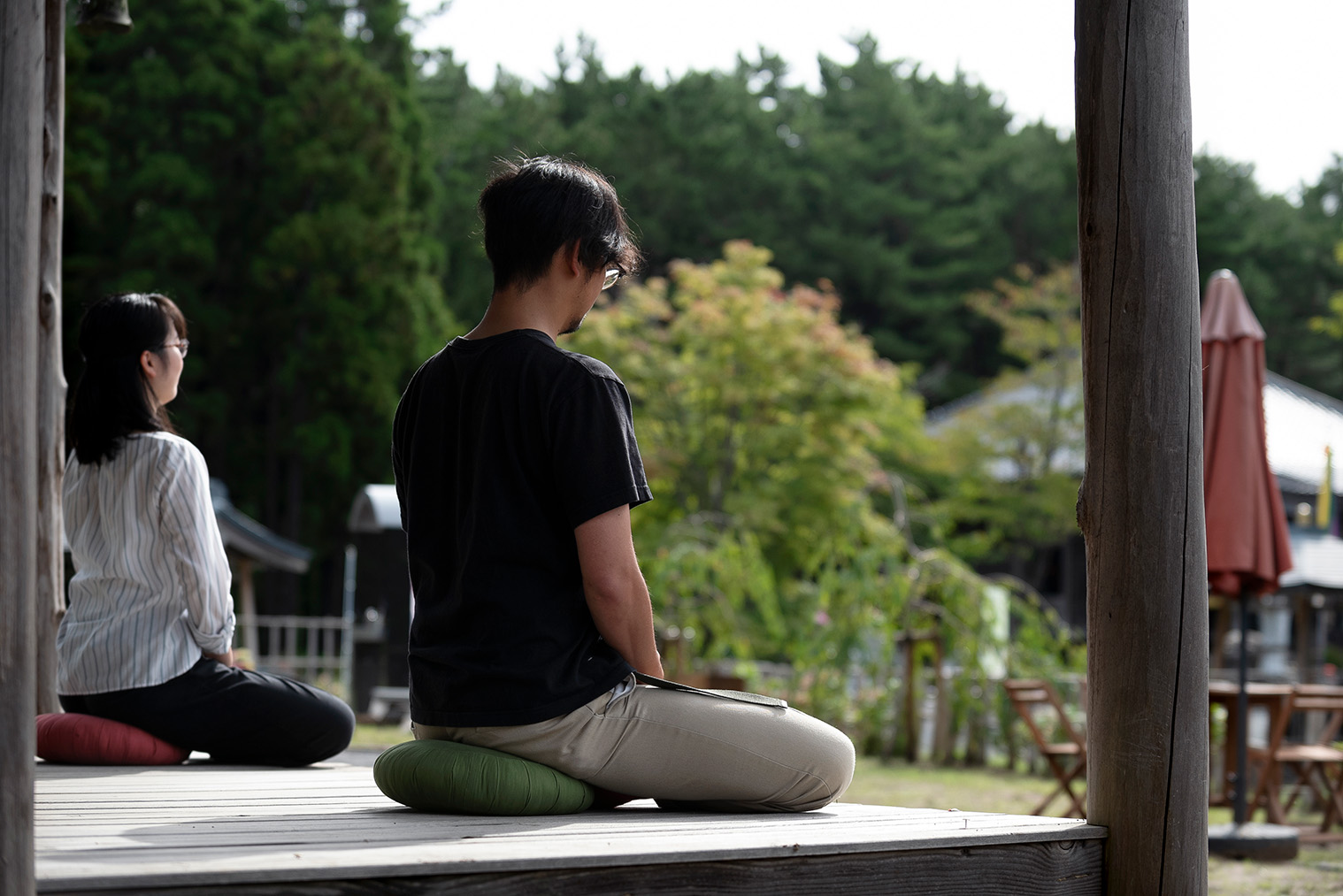 お好みの場所に座っていいとのことだったので、手入れの行き届いた境内を一望できる丘の上の東屋をチョイスして足を組む。風の強い日が多い大間では珍しく穏やかな朝の空気が清々しい。体験時間は説明を含めて40分。古来は線香が燃え尽きるまでを坐禅の時間の目安としていたこと、曹洞宗では屋外坐禅が本来の姿で「广」のない「坐」を用いていることなど、終わる頃には心の爽快感だけでなく知識が増えているのが嬉しい。