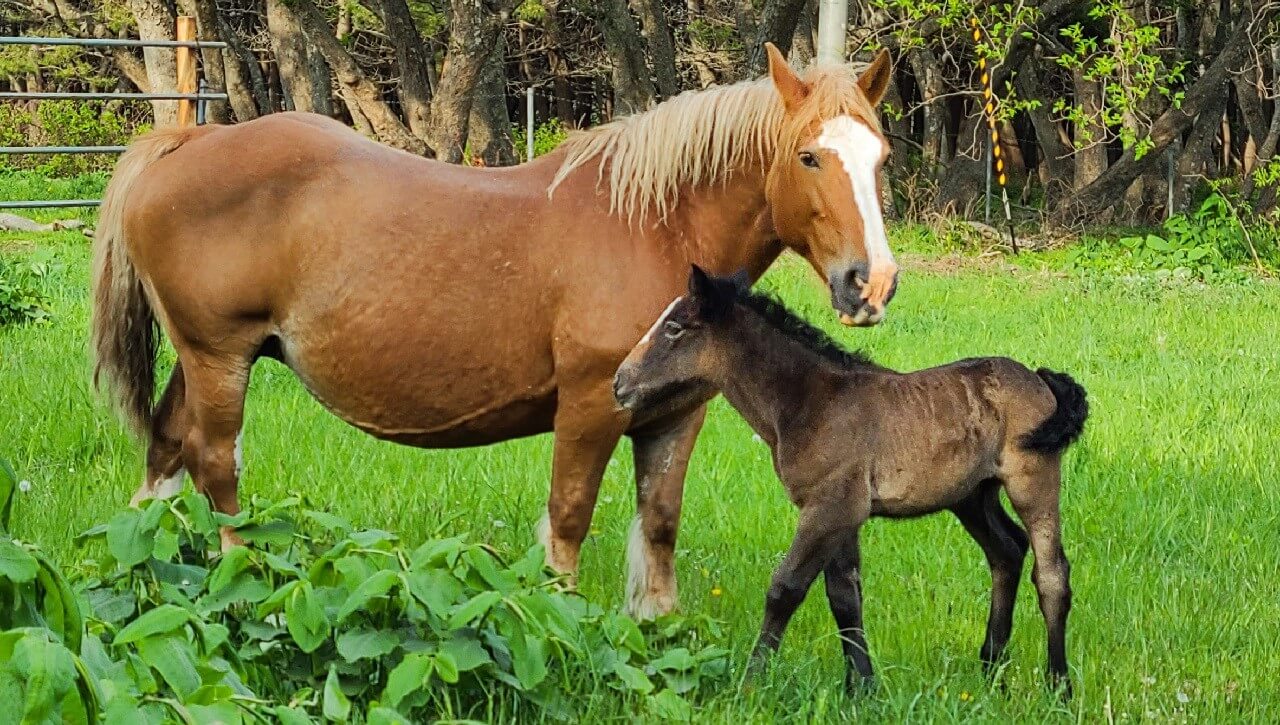 寒立馬の出産シーズンは4月から5月にかけて。この時期は、まだ生まれて間もない仔馬が母馬に寄り添ってお乳を飲んだり、甘えたりする姿がなんともほほえましく観察できます。時折やんちゃに走っている姿に、「めんこいなー」と思わず口にするのは、筆者だけではないでしょう。今回の取材では残念ながら見ることができませんでしたが、タイミングが良ければ、母馬に乗っかるようにしてじゃれる仔馬の姿も見られるそうです。