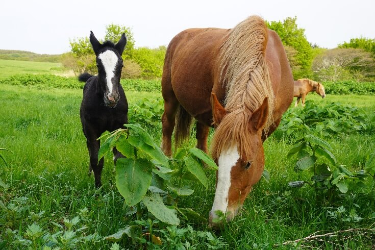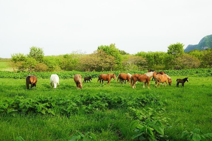 取材した2022年5月現在、放牧頭数は、親馬11頭、仔馬5頭。現地で見学する際の見どころのいくつかを紹介します。