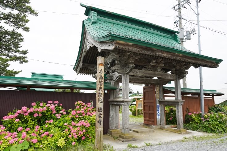 柴五郎一家居住跡から田名部方面へ車で約10分。むつ市中心街の一角に浄土真宗の徳玄寺があります。ここは、まだ乳幼児だった斗南藩藩主・松平容大の生活の場であり、重臣たちが会議を行った場所です。