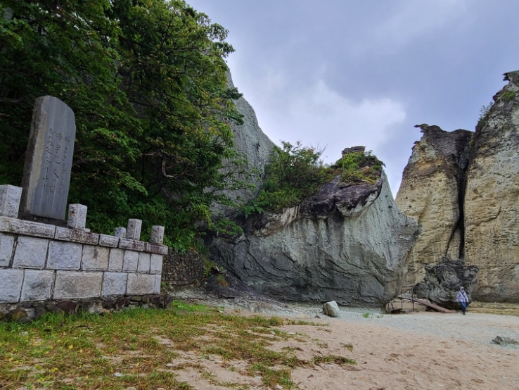 また、文政年間(1818- 1831)には、盛岡藩の実務官吏だった漆戸茂樹(1790-1870)が「北の奥旅路記」に「海上より海岸に大岩立ちたる、これを一ツ仏という。極楽浜と云うは、砂場にて、きれいなる磯辺、仏ケウタとて白岩、とがり立ちたる数々あり、まことに奇なる岩ともなり、珍しき所なり」と記しています。