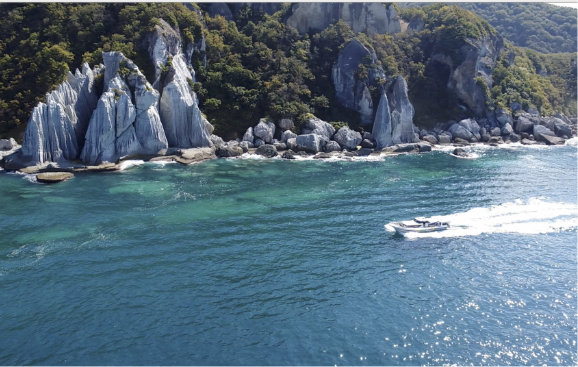 私は高校卒業後、佐井定期観光(株) に入社して仏ヶ浦への観光船に乗っており、現地で案内などもしております。毎日のように運航、案内しているなかで仏ヶ浦の海の綺麗さ、奇岩の形状、自然の魅力を日々感じており、それを乗船されたお客様に10分程の案内のなかでどのように伝えるかまだまだ勉強しております。