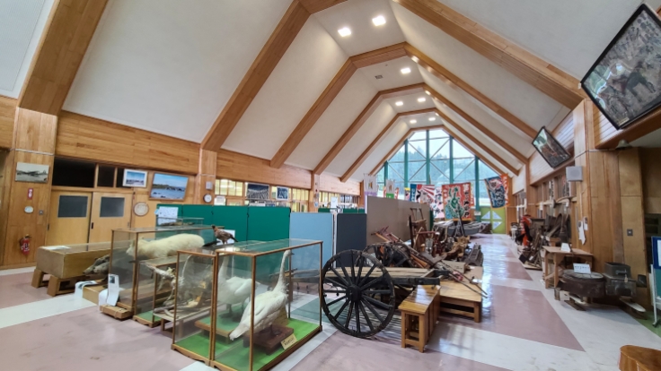 資料館は、東通村役場から車で10分ほどのところにあります。閉校した旧・田屋小学校・中学校の建物を利用しており、どこか懐かしい雰囲気が漂います。