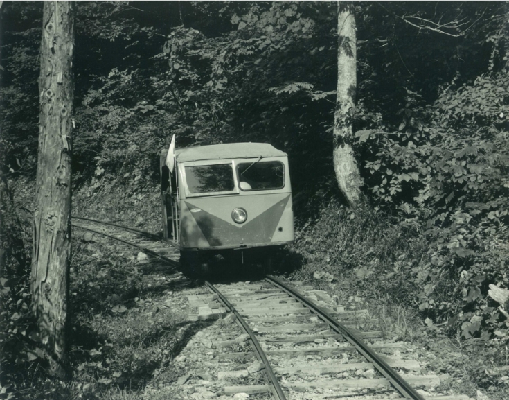 明治42年(1909)に津軽森林鉄道が日本初の森林鉄道として開通します。続いて下北地域でも明治期に敷設を開始し大正2年(1913)に現在のむつ市川内に森林鉄道が開通。森林鉄道は、のちに薬研を含む大畑にも開通します。蒸気機関車が丸太を搬出し、昭和に至るまでの木材需要の全盛期を経て、戦後復興にも貢献します。