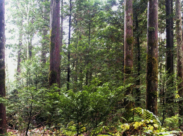 青森県は、藩政時代からヒバの産地として知られていました。津軽半島では津軽藩がヒバの伐採を強く制限したのに対し、下北半島を統治した南部藩は、財源確保の必要性から木材生産に積極的であり、また、単に木材を伐り出すだけでなく、造林にも力を入れていました。この過程で、現在のヒバ林と落葉広葉樹が織り交ざる状態になったのだといいます。