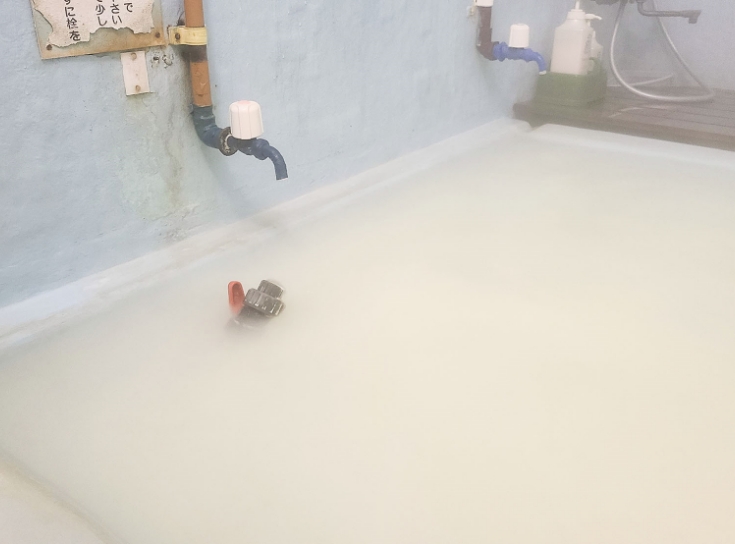 3つの源泉のうち、長い歴史があるのが大湯と新湯です。いずれも硫黄臭の元となる硫化水素型の泉質ですが、大湯は乳白色の濁り湯、新湯はサラサラとした透明の湯。大湯は効能が強くあらわれ、新湯の方が体への負担が少ないといわれています。