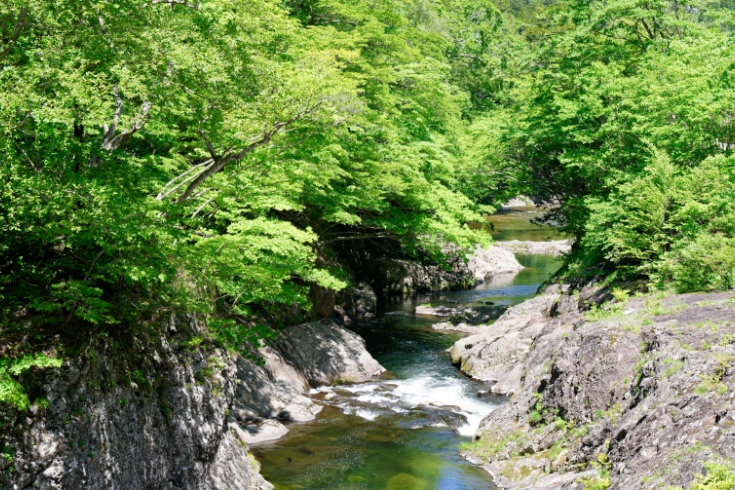 レストハウスを拠点に奥薬研の遊歩道を歩く。下北のヒミツ(♯06)には秋の紅葉の美しさと、冬の見どころが書かれていたが、新緑の時期の散策も気持ちがいい。渓流沿いを歩きながら、気の向くままにシャッターを押す。