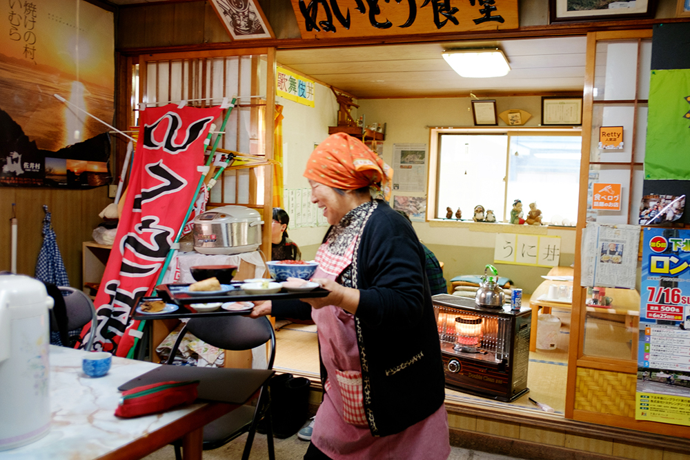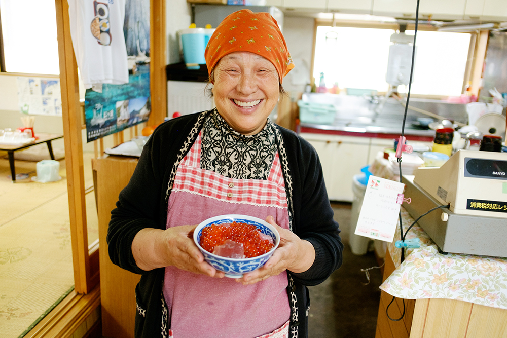 春のウニ漁の時期には、柳田さんは旦那さんと夫婦で沖に出かけ、ウニを獲ってくる。自ら獲ってくるウニだけでなく、できるだけ多くの人に食べさせたいと、他の漁師や漁協からも仕入れる。漁が終わってから仕込みをして、夕方まで食堂の営業。大忙しだ。