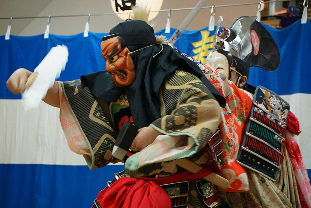 誰でも鑑賞できる貴重なイベントが、毎年1月初旬に東通村体育館で開催される、連合会主催の郷土芸能発表会だ。今年で52回目を迎える歴史ある発表会で、村内の能舞、神楽、獅子舞などが一堂に会し、朝から夕方までたっぷりと楽しむことができる。また、能舞を地域活性化に活用しようと、東通村のグルメと組み合わせたイベントも時折開催されている。