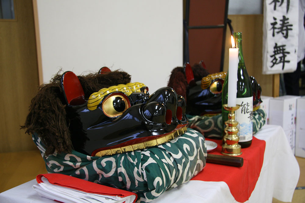 能舞は、修験者がもらたしたもので、熊野権現を奉じて、悪魔退散、家内安全を祈祷する演劇的な芸能だ。目名不動院という修験者が15世紀に東通に伝え、その歴史は600年に及ぶ。修験者から教わって、農民、漁民の間に普及し、それぞれの地区で受け継がれてきた。能舞は、神社の祭礼での奉納のほか、正月祝い、新築祝いや結婚式などの節目で舞われる。