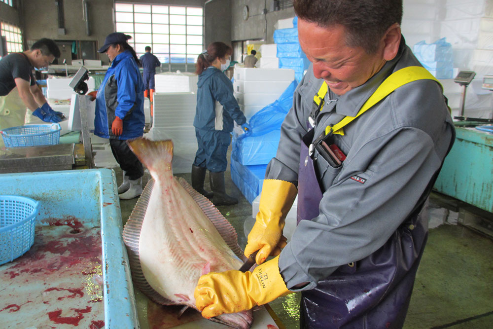 青森県はヒラメの漁獲量日本一。県の魚に認定されているのもヒラメだ。稚魚の放流も県内各地で盛んに行われており、水産資源を守り育てながら海の恵みをいただいている。東通村は、その青森県内でも有数のヒラメ水揚げ量を誇る一大産地。村内には7つの漁港があり、中でもヒラメの水揚げが最も多いのが、尻労(しつかり)漁港だ。2016年の東通村のヒラメ水揚げ量は162トン。そのうちの半分近い77トンが尻労漁港で水揚げされている。