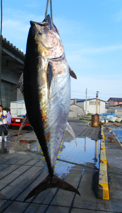 意外なことに、この時釣り上げたのは270㎏のビッグサイズではなく、その半分の100kg台で、スマートな体型のマグロ。
