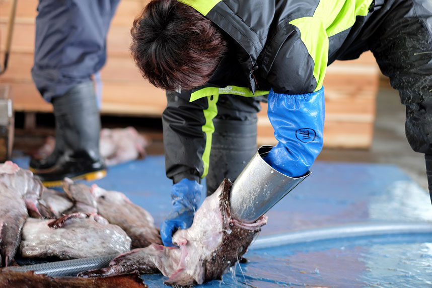 「鮟鱇を獲る時には、とにかく鮮度を落とさないように、すばやく網から外していけすに入れることが大事。丁寧に扱わないと。漁師は魚に生活させてもらっているんだから、粗末にできない。」