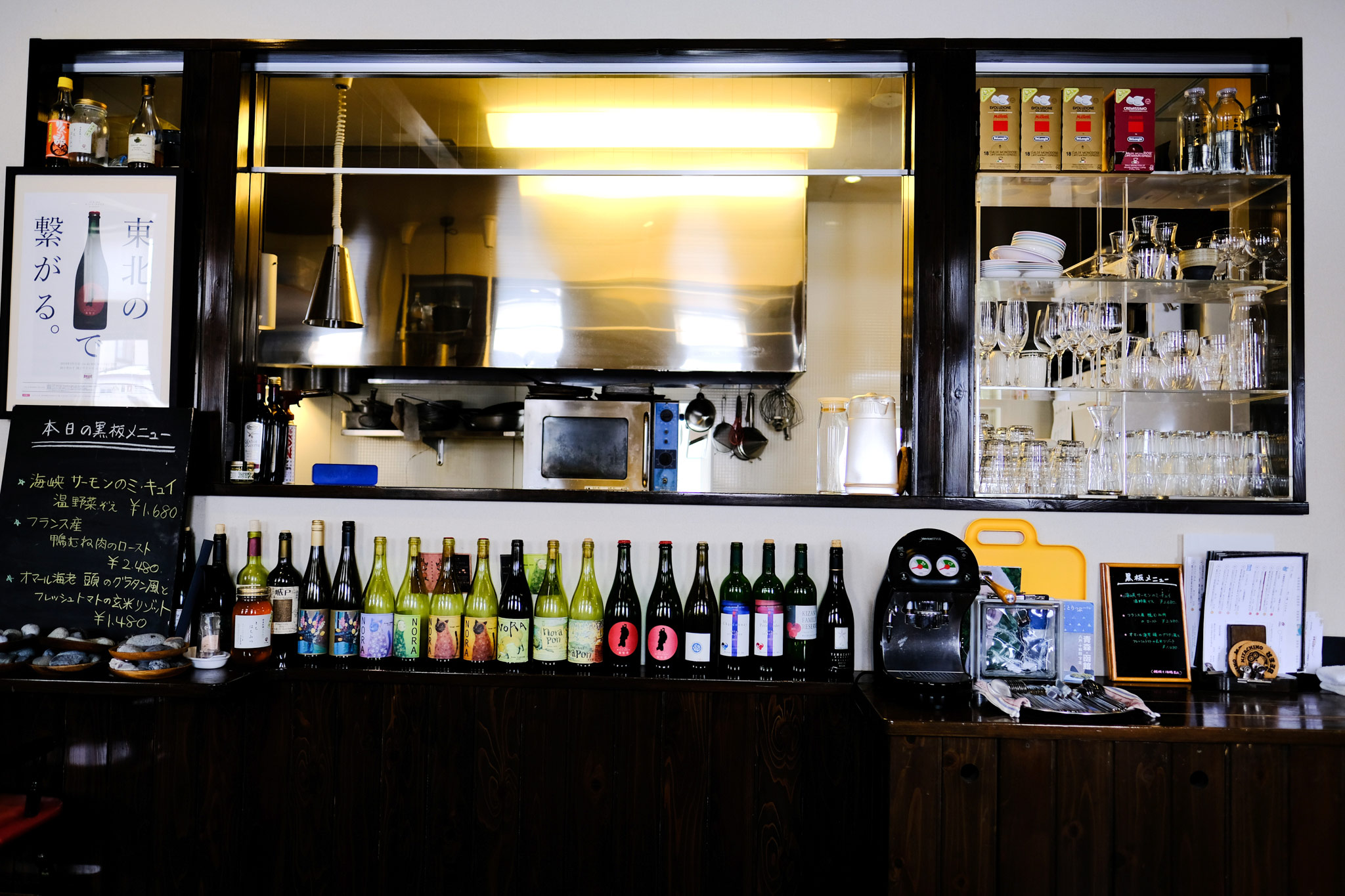 「東日本大震災を機に、ワインも、作り手が見えるものを置くようになりました。それまでは海外の有名なワインが中心だったんですが、海外まで作り手に会いに行くのは難しい。だから、作り手に会いにいける日本国内のワイン、特に、環境を重視して作っている自然派のワインにしようと。今、店に置いているワインは、どんな人が作っているのかわかる。変な話ですが、どんな家族構成で、子どもが今年生まれたとか、そういうことまでお話しできるようなものばかりです」