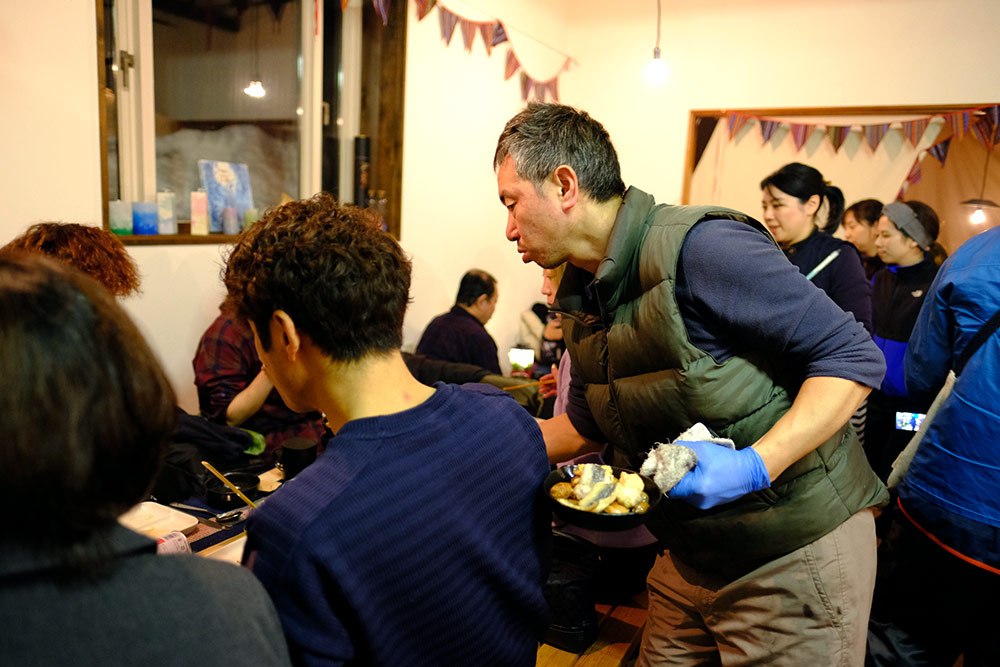 竹川さんは、店での仕事以外に、地域でのイベントなどにも積極的に協力している。写真は、2020年2月に薬研温泉郷で開催された1日限りのレストラン「Yagen Camp