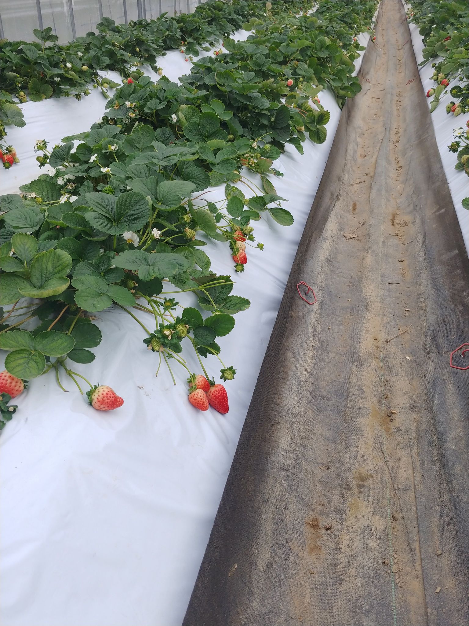 ①夏秋いちごの栽培についてレクチャー後、ハウス内で収穫体験