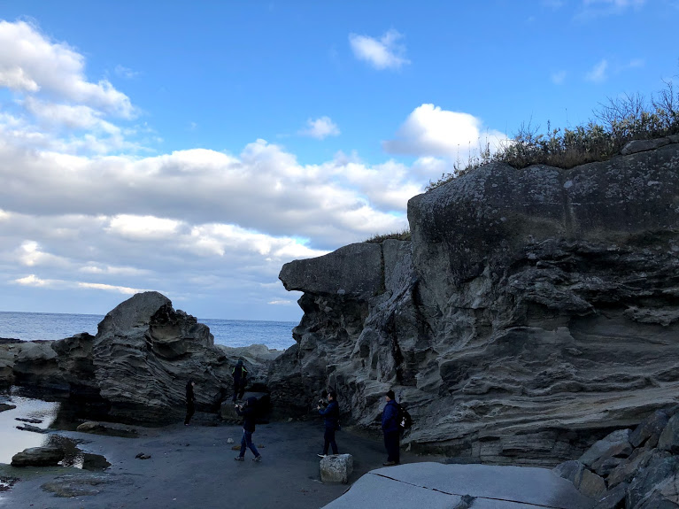 約300万年前から185万年前の火山活動によって出来た大畑カルデラが作った、地形と地層。そして海沿いには噴出物と海底の砂が団結したことにより出来た波食棚。