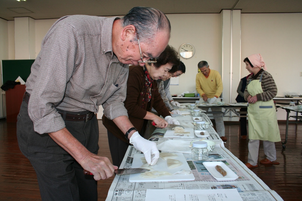 "風間浦村観光協会では、風間浦村ならではの体験を提供しています。 地元のお母さんと作るオリジナル塩辛作り 5名以上で体験可能です。 ・10月~11月9:00~16:00(体験時間1時間) ・材料費 時価 ・要電話予約 ※材料のスルメイカが獲れないと体験はできません