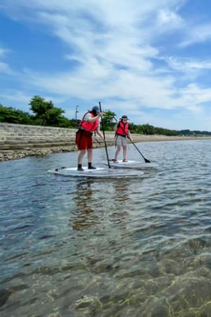 川から海をサップでゆったり巡るツアーです。ガイドが漕ぎ方を教えてくれるので、初心者でもチャレンジできます。山や海の風景をのんびり楽しむことができます。
