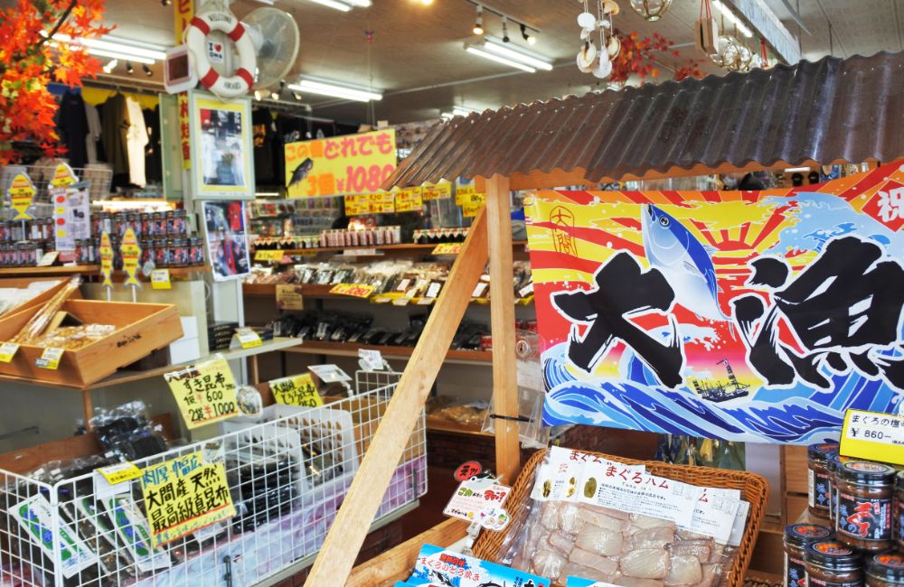 大間産マグロをはじめとした海産物、手づくりの海産珍味、ショップオリジナルのマグログッズなどさまざまなお店が軒を連ねています。