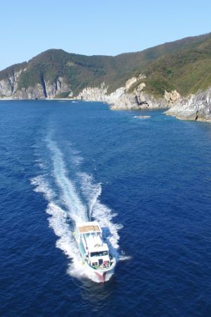 海から見る仏ヶ浦は美しく極楽浄土を思わせる景色が広がります。