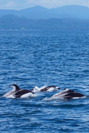 例年4月下旬から6月上旬にかけてカマイルカの群れが回遊してきます。観光遊覧船「夢の平成号」では、期間限定でイルカウォッチングツアーを開催します。